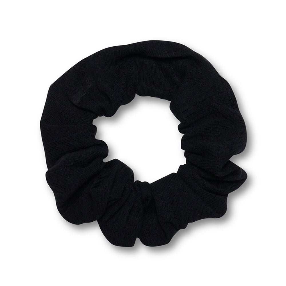 Elevate your everyday style with this cute black scrunchie, crafted from sustainable surplus pointelle cotton. The timeless base colour paired with cheerful contrasting spots creates an instantly recognisable accessory that works beautifully whether securing an updo, adorning loose waves, or worn as a chic wrist accent. Perfect for those who value both style and sustainability, this versatile piece effortlessly transitions from day to night.