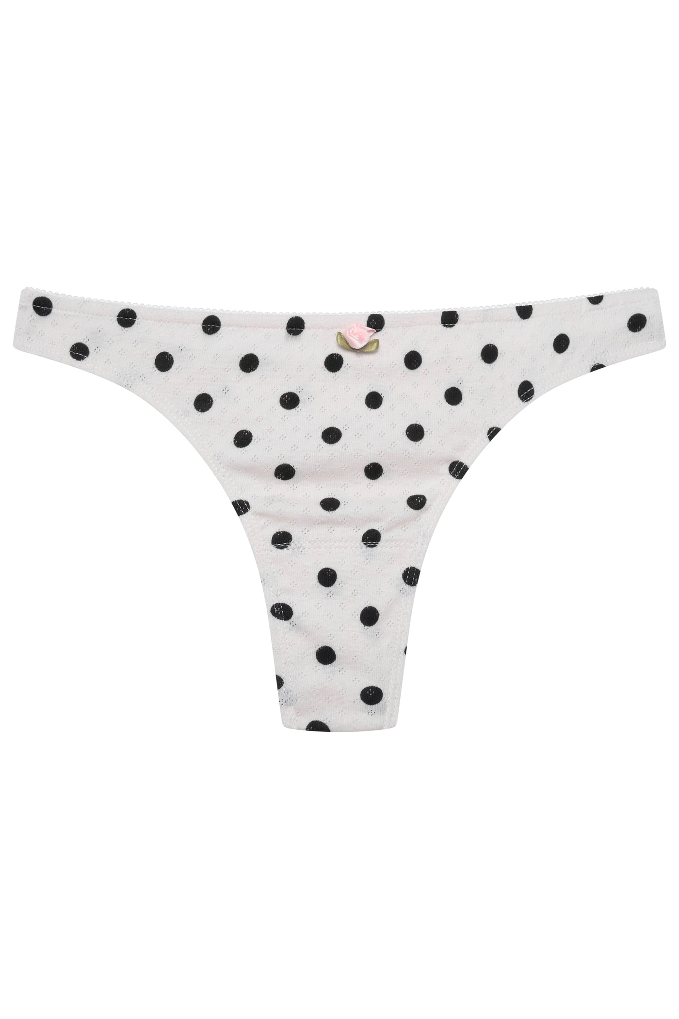 Pointelle Thong Knicker- Black Polka Dot Sale