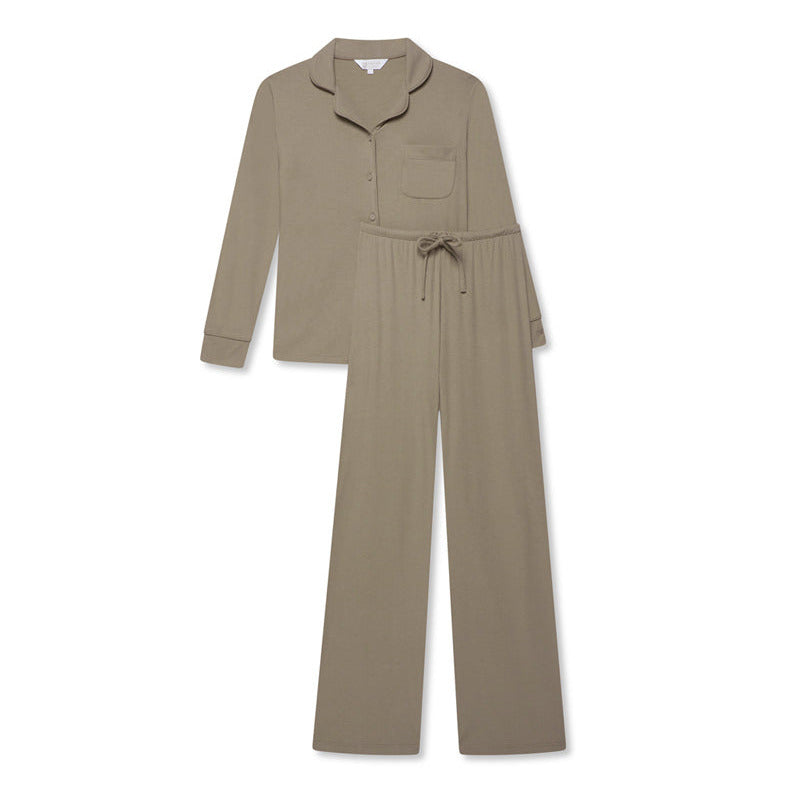 Stretch Ribbed Pyjama Trouser Set - Cappuccino Sale
